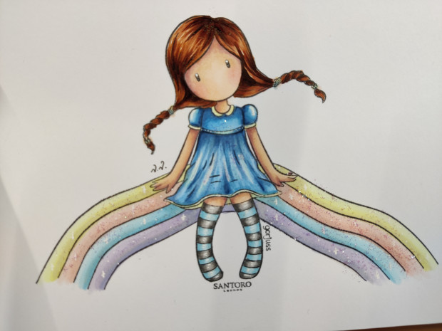 inschrijvenInkleuren met COPIC markers: Gorjuss meisje met regenboog