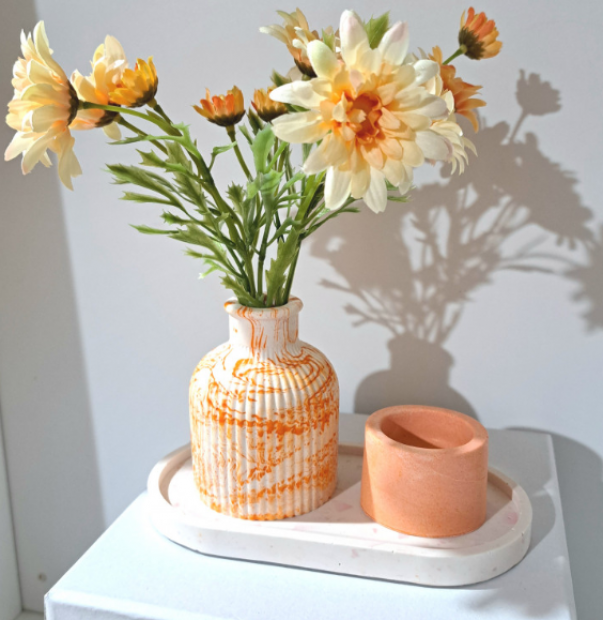 Zaterdagnamiddag 22 nov. '25 kan je het onovertroffen Jesmonite product komen ontdekken! Wie wil kan terrazzo flakes maken om deze dan te gebruiken in de vormen die je zal gieten! Je krijgt een set poeder + liquid en daarme kan je dan verschillende vormen gieten. Je kan gebruik maken van onze kleurstoffen en verschillende vormen zoals schaaltjes, potjes, theelichthoudertjes, ... .
