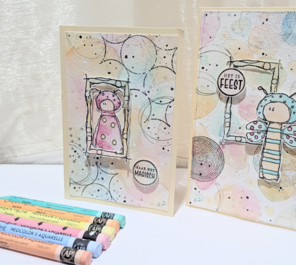 Prijs: 25€ + materiaal (stempelpakket ligt klaar om aan te kopen, neocolor II kan je zelf jouw kleuren kiezen en aankopen)
